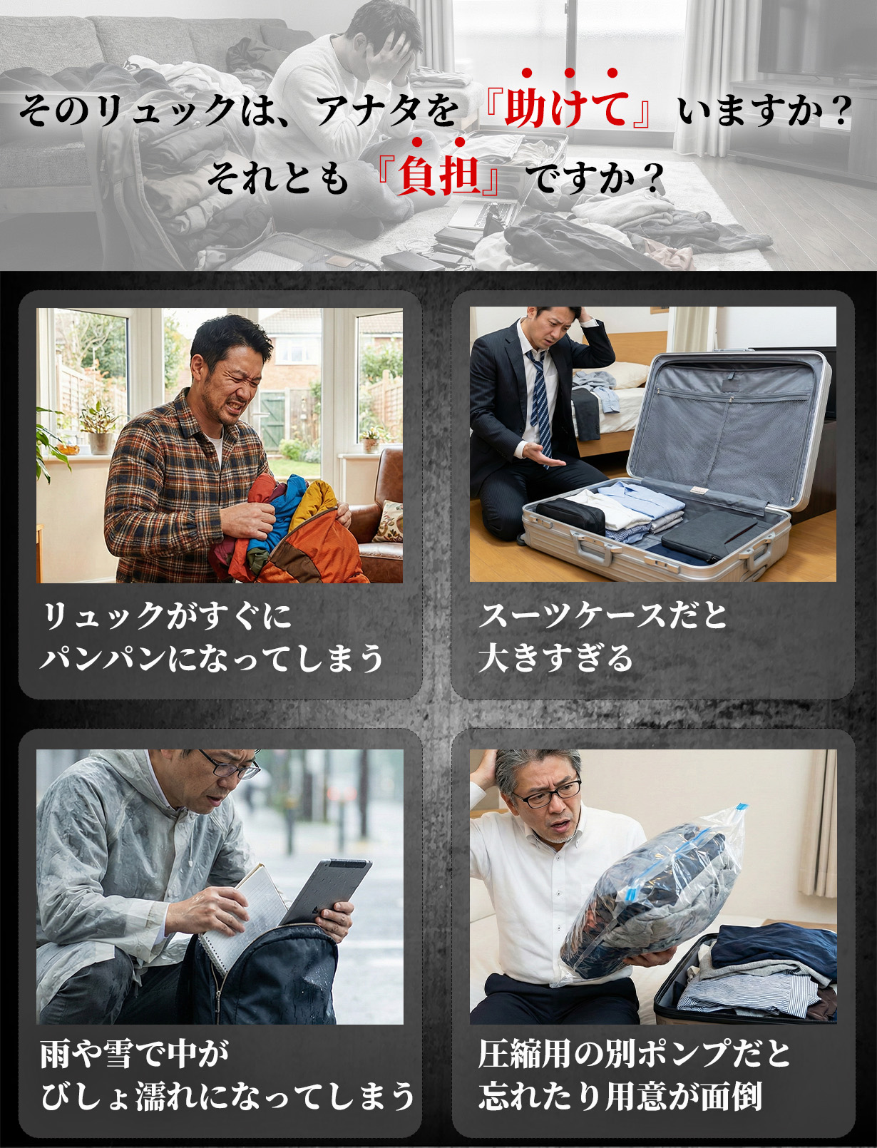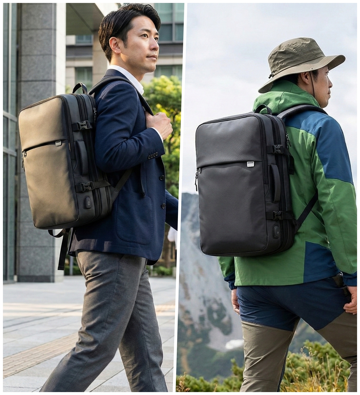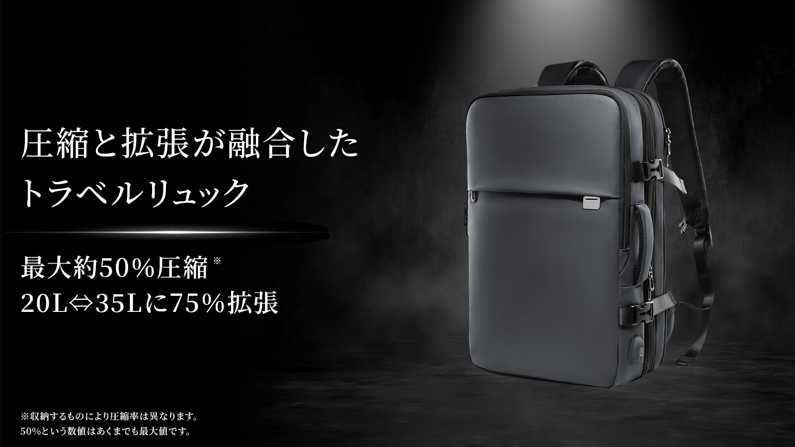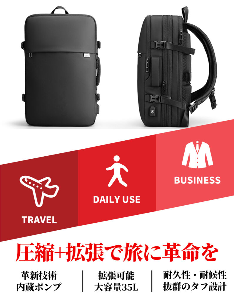 旅行から普段使いまでこれ1個で完結!『圧縮』と『拡張』で荷造りに革命を起こす【ポンプ内蔵圧縮リュック】