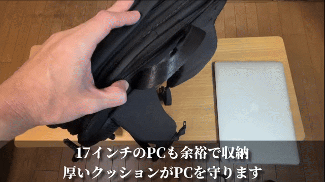 たくさんの衣料を収納した状態でも、更にPC収納スペースなど他のスペースも利用する事ができます。