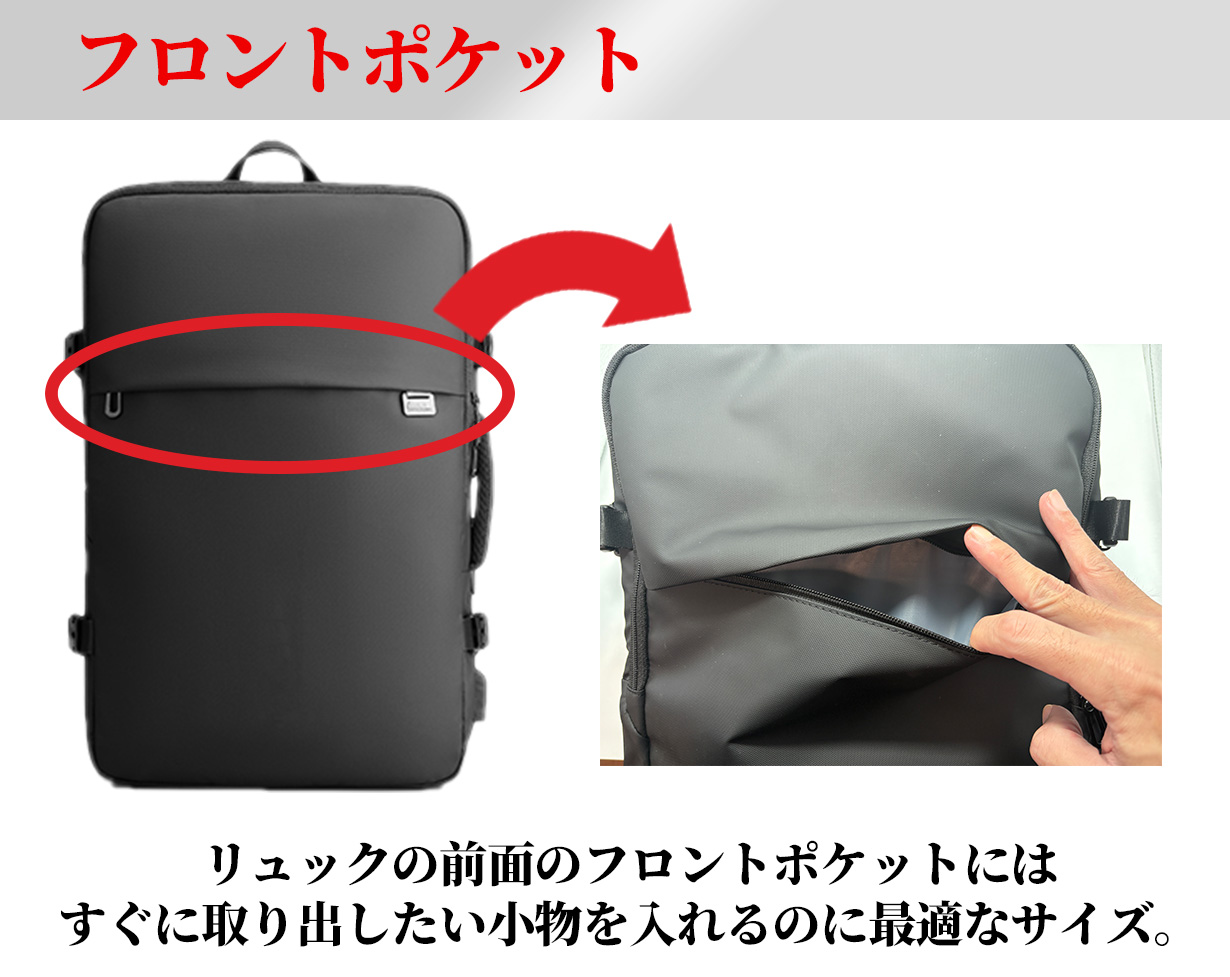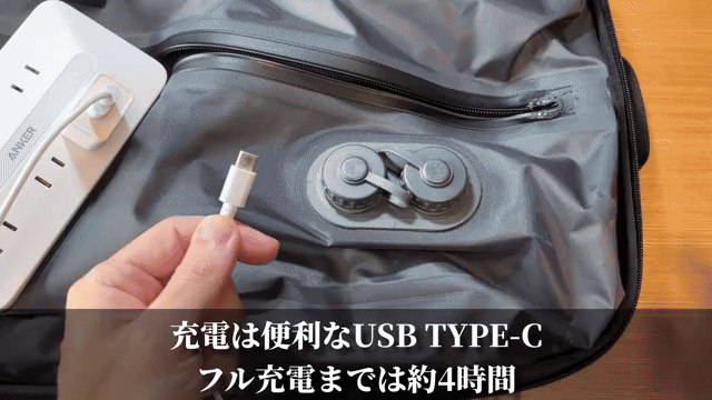 ※リュックのUSBポートを利用して充電を行う場合、別途モバイルバッテリーをご用意いただく必要がありますのでご注意ください。