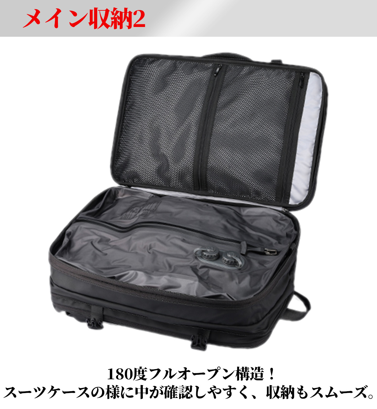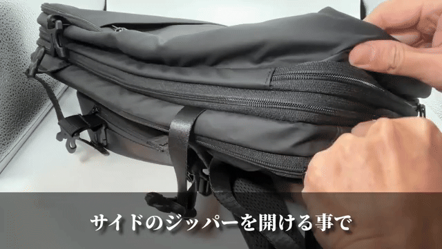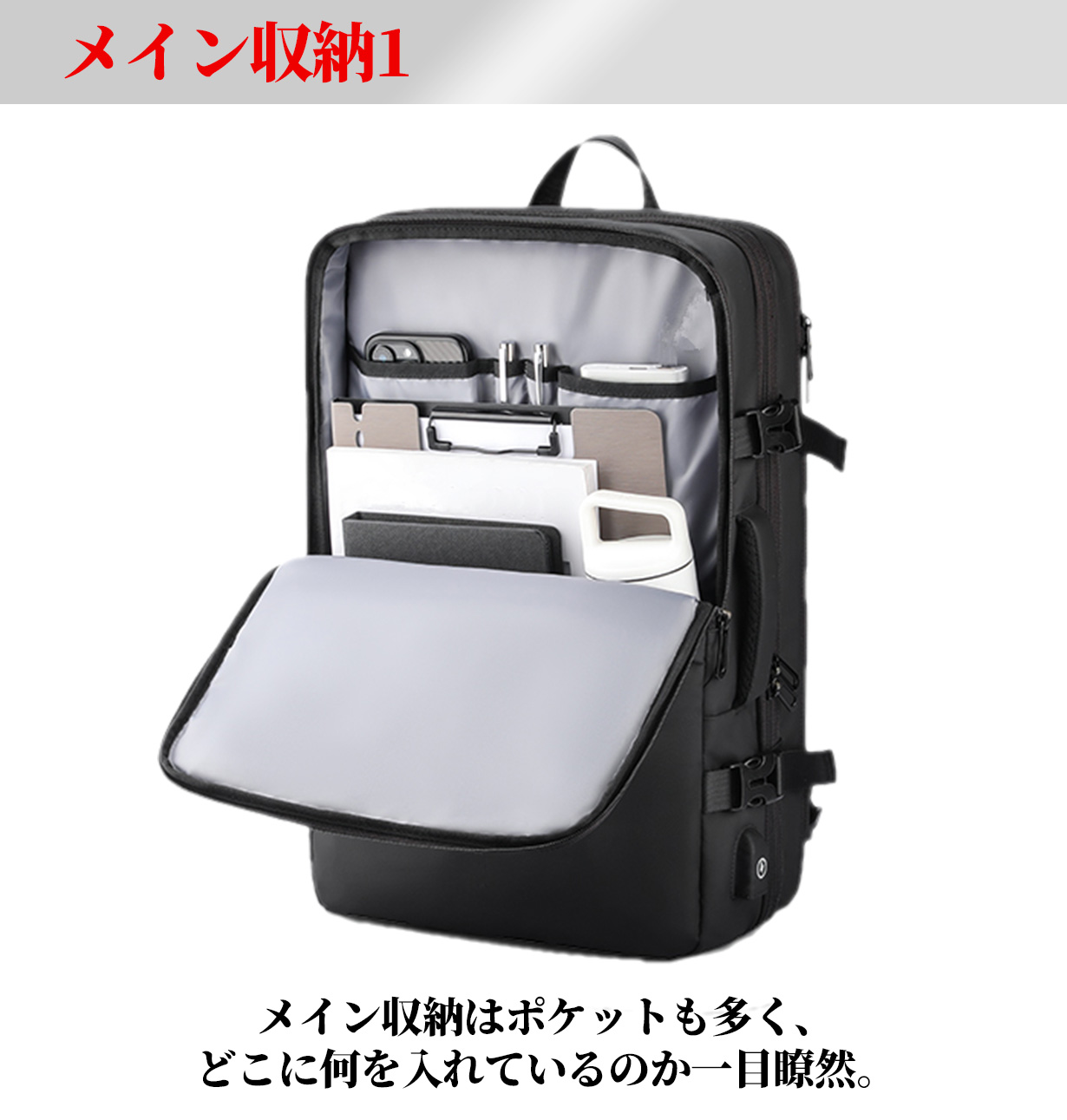 拡張と圧縮の機能を兼ね備えているので、一般的な同等のサイズのリュックとは比べ物にならない収納力を発揮!
