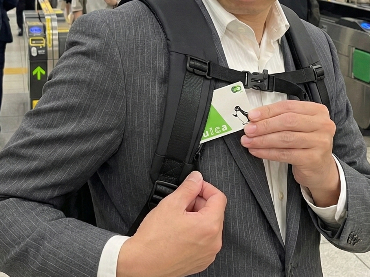 ストラップ部分にはカードを入れるポケットがあり、交通系ICカードなどを入れておくのに便利!